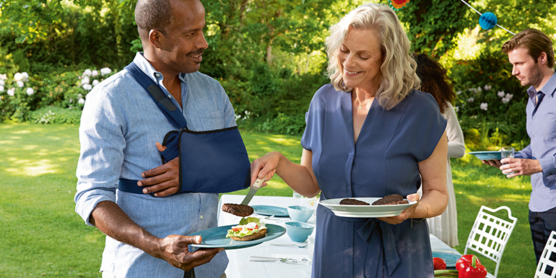 Actimove Professional Line Mitella Comfort Armslynge er laget i et pustende materiale som gjør produktet komfortabelt. Støtter smertelindring ved å stabilisere skulderleddet.